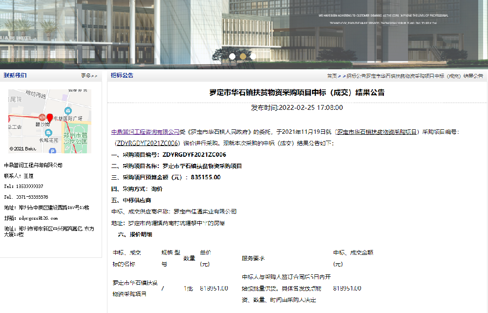 • 羅定市華石鎮(zhèn)扶貧物資采購(gòu)項(xiàng)目中標(biāo)(成交)結(jié)果公告 2022-02-25